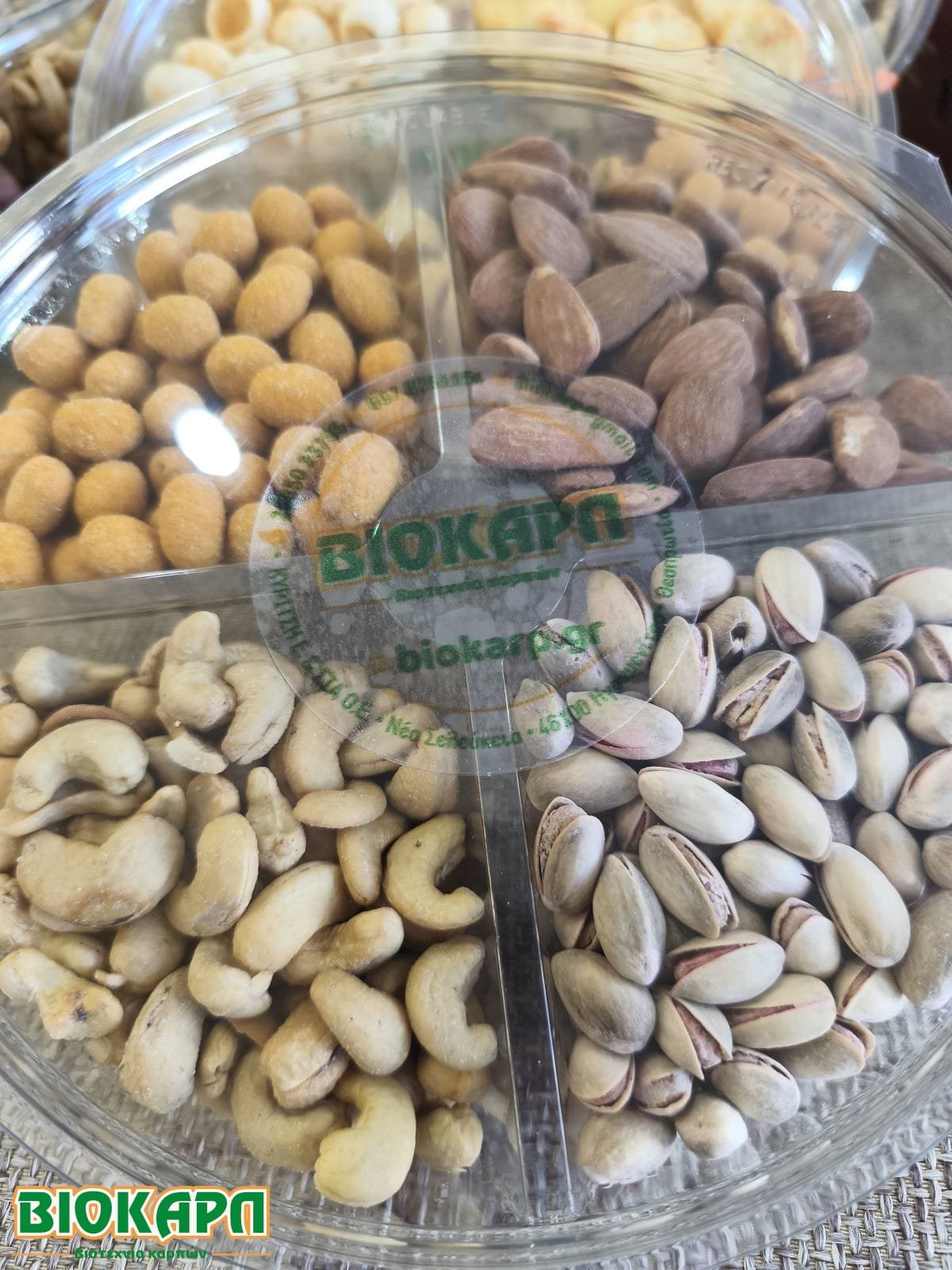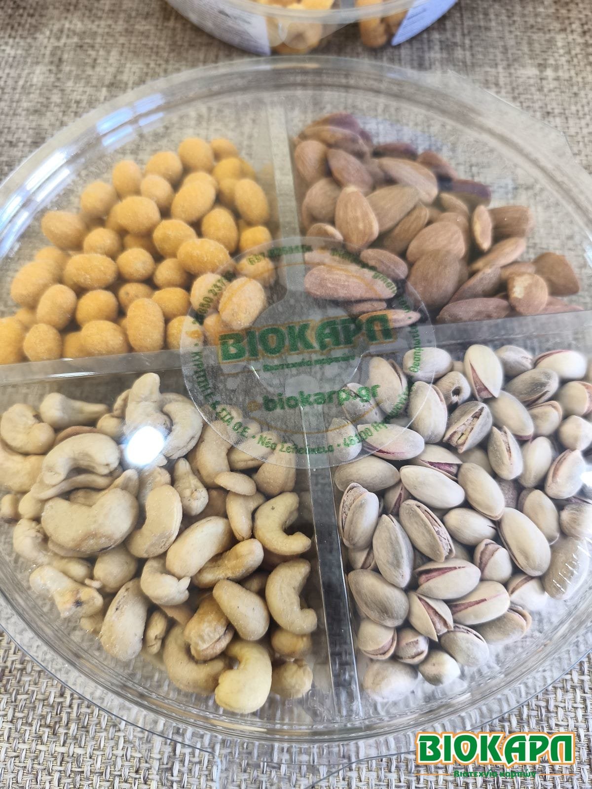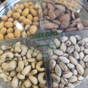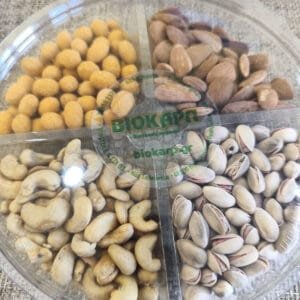 A beautiful package with 4 Flavors of Unsalted Nuts!! You place it on the table, open it and you instantly have a delicious and beautiful variety of nuts. It is an ideal package to offer as a Gift
