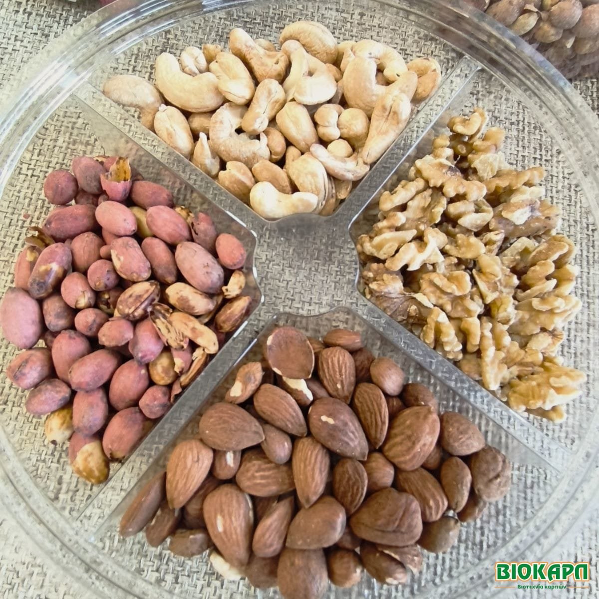 Μία όμορφη συσκευασία με 4 Γεύσεις Ανάλατων Ξηρών Καρπών!! Την τοποθετείς στο τραπέζι, την ανοίγεις και έχεις στην στιγμή μια νόστιμη και όμορφη ποικιλία ξηρών καρπών. Είναι Ιδανική συσκευασία να την προσφέρεις σαν Δώρο, για να την μοιραστείς με τους καλεσμένους και την οικογένεια σου ή για τον εαυτό σου!! Η τετράδα αυτή περιέχει:
